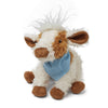 This little guy is moo-cho cute in cream and mocha brown shaggy fur with soft velour features. A favorite of all the Good Friends on the Farm this is udderly more than your average stuffed cow with a handsome blue checked bandana tied around his neck and a fun tuft of white hair upon his head. Size: 14".